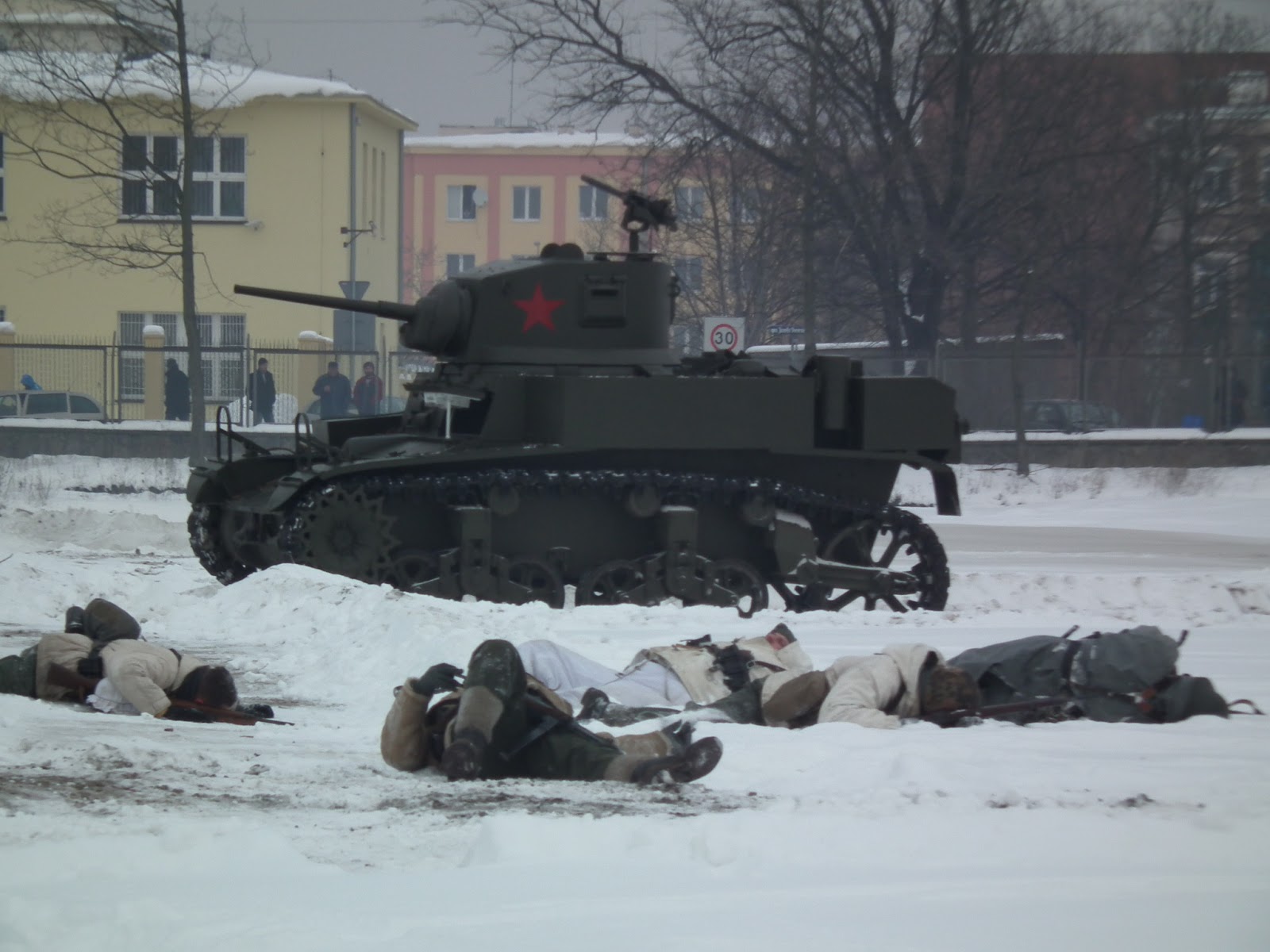 W inscenizacji wzięli udział członkowie grup rekonstrukcyjnych: Stowarzyszenie Rekonstrukcji Historycznej AA7, Stowarzyszenie Miłośników Historii i Oręża w Bydgoszczy, Grupa Rekonstrukcji Historycznej Wiking, Muzeum Wału Pomorskiego i Stowarzyszenie Theatrum Historica, 503 Batalion Czołgów Ciężkich. Wśród sprzętu można było dostrzec czołg M3A1 Stuart, samochód pancerny Scout Car i BA-54, armatę przeciwpancerną 7,5 cm PaK 40, ciężarówkę Kloncker, samochody terenowe Kubelwagen i Willis Jeep.