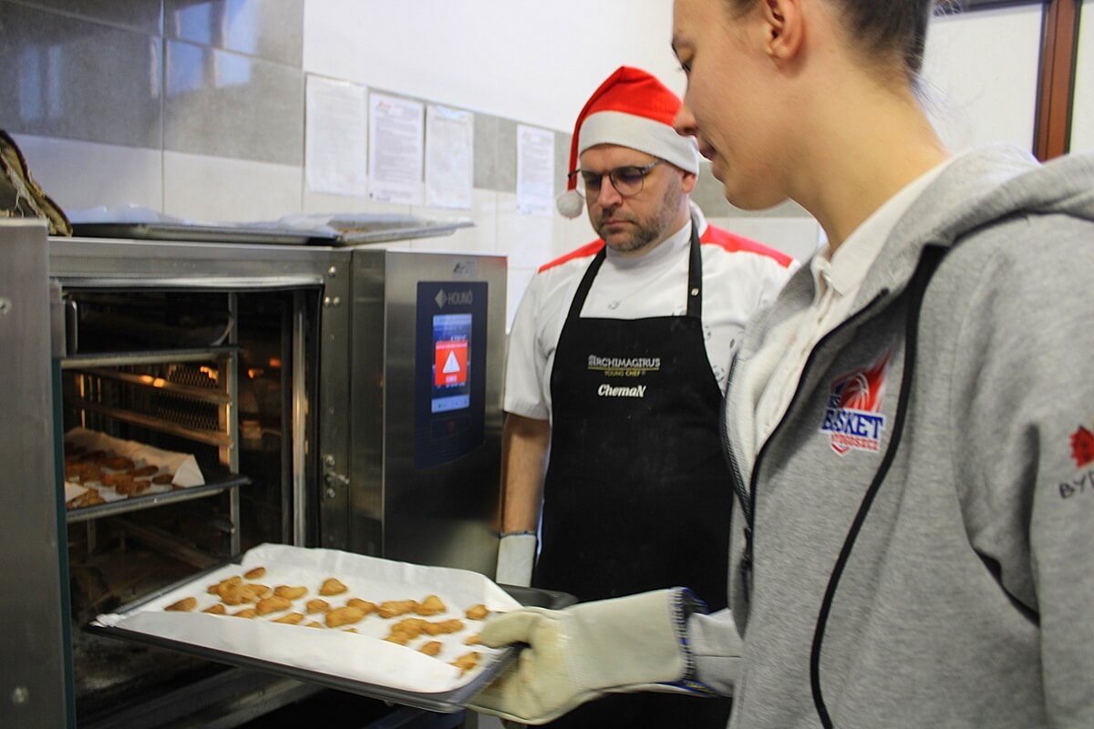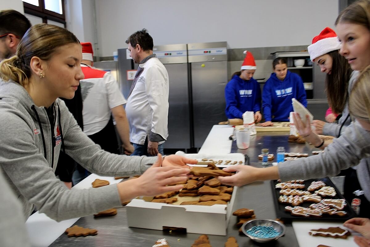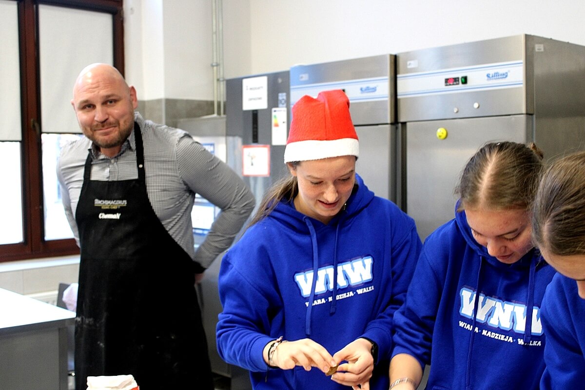 Przyszli kucharze i cukiernicy, przed świętami Bożego Narodzenia nie próżnują. W Zespole Szkół Gastronomiczno-Hotelarskich w Bydgoszczy dziś wielka piernikowa mobilizacja – trzeba było upiec i udekorować mnóstwo świątecznych pierników dla podopiecznych Szpitala im. dra Jurasza, przebywających m.in. na oddziale onkologicznym. Każde ręce do pomocy się liczyły, nie ważne że na co dzień wrzucające piłki do kosza lub broniące bramki przed golem…
