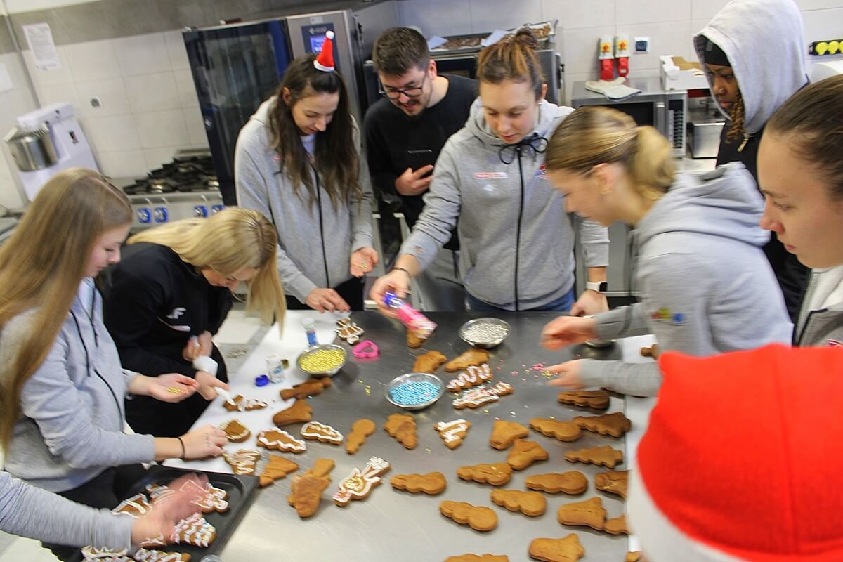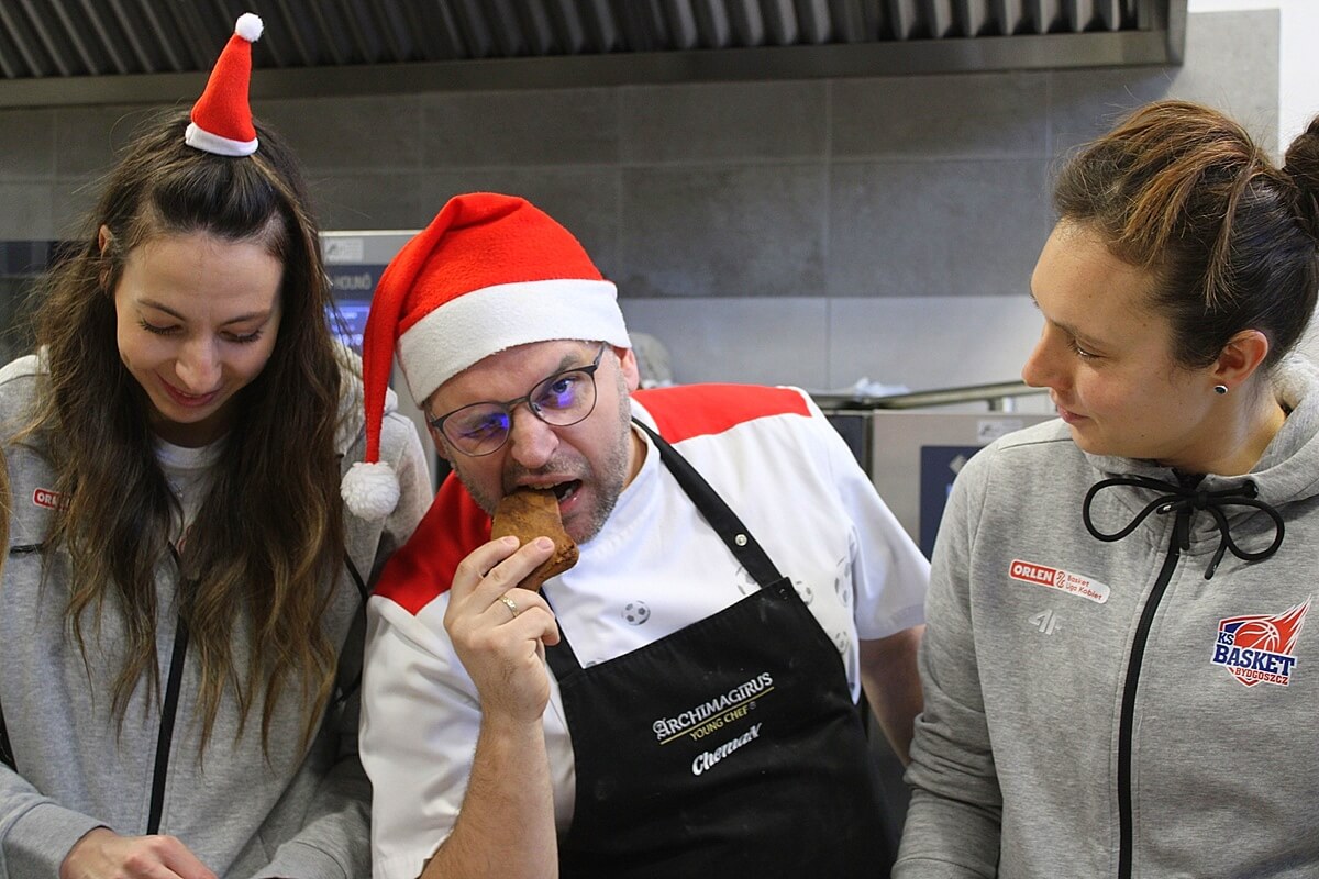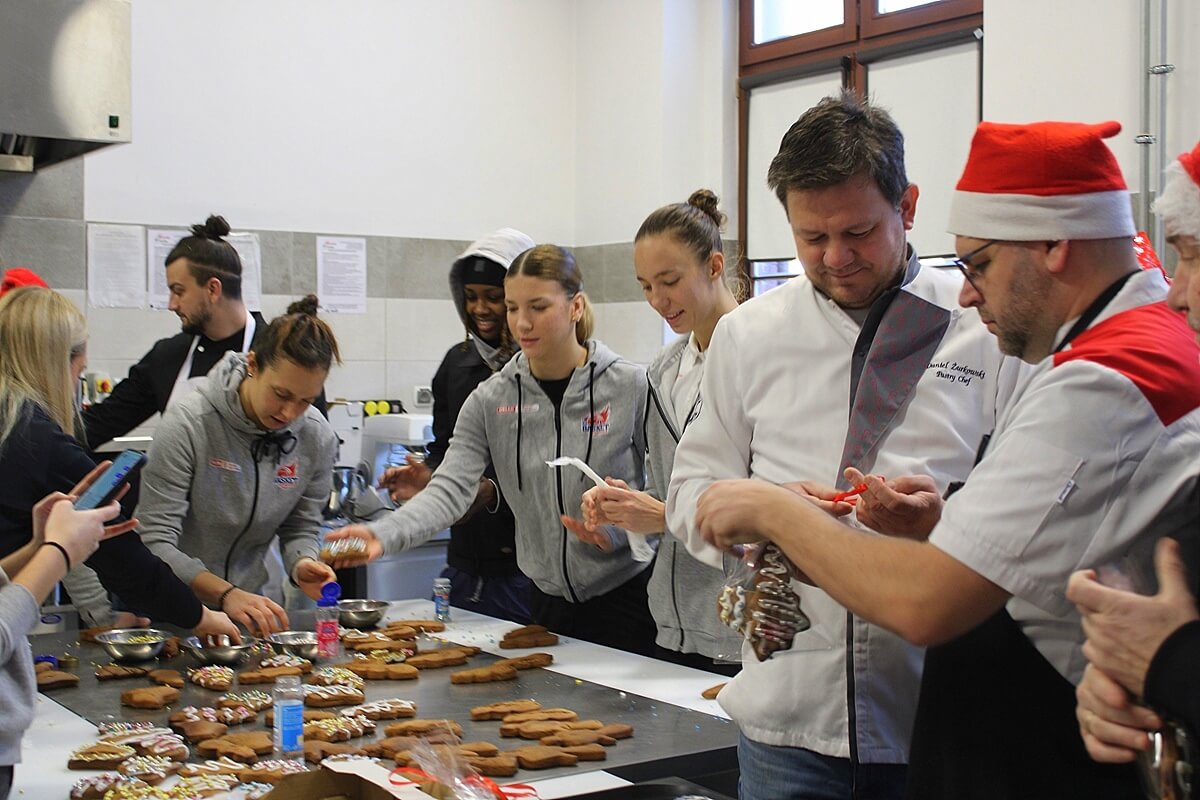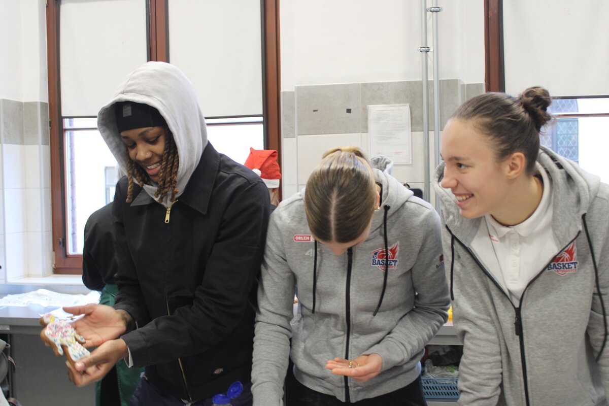 Thank you for reading this post, don't forget to subscribe!To kolejna już akcja wsparcia przez bydgoskich sportowców szlachetnej misji bydgoskiego „Gastronomika”. Tak spodobała się ona zawodniczkom KS Basket 25 Bydgoszcz i piłkarkom KKP Bydgoszcz, że same dopytywały się, kiedy wreszcie staną przed stołem pełnym piernikowego ciasta żeby wycinając, ozdabiając i piekąc pierniczki – stworzyć dar serca dla dzieci, które mają tak mało powodów do radości i uśmiechów – małych pacjentów przewlekle chorych, przebywających na