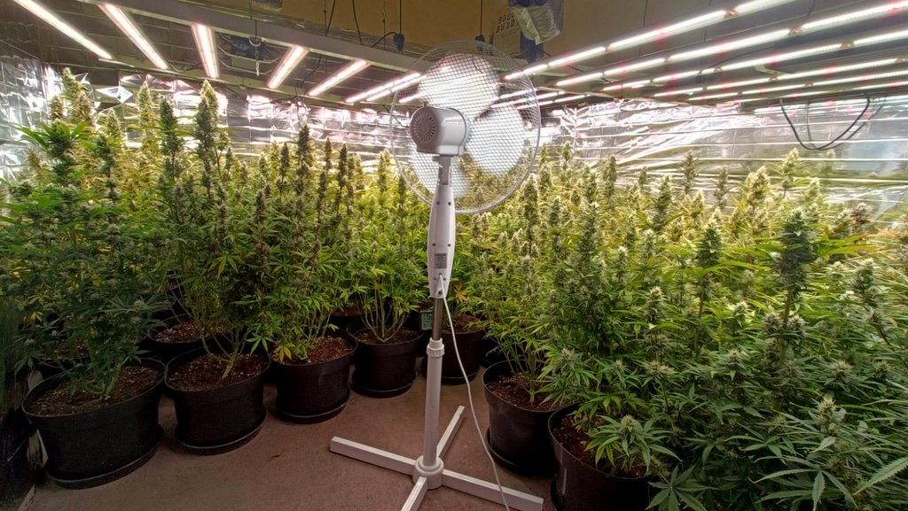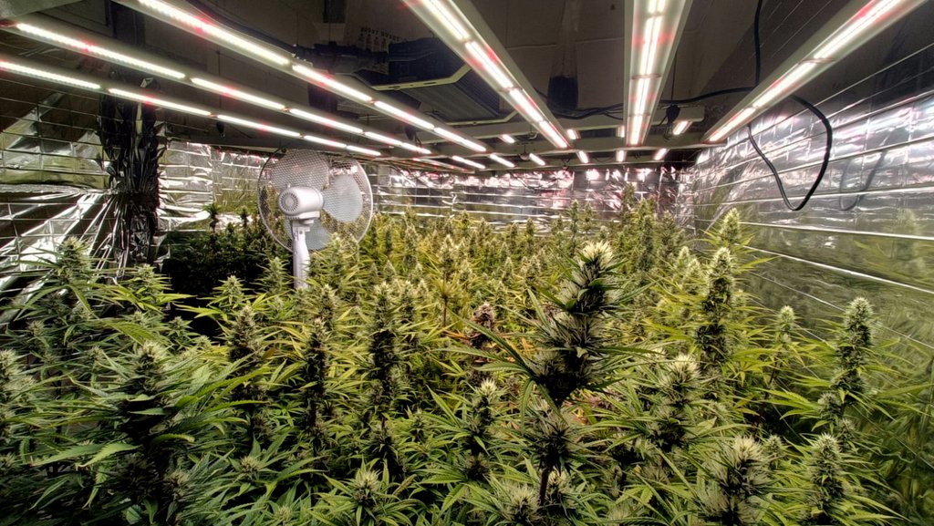 W sobotę (04.01.2025) kryminalni postanowili to sprawdzić. W tym celu, wspólnie z kolegami z bydgoskiej komendy miejskiej na co dzień zajmującymi się zwalczaniem przestępczości narkotykowej, pojechali pod ustalony adres w gminie Łabiszyn. Tam zastali podejrzewanego mężczyznę. Następnie, po przedstawieniu powodu wizyty, przeprowadzili przeszukanie domu. Już będąc w korytarzu na parterze wyczuwali, dobiegającą od strony klatki schodowej, woń marihuany. To, co ukazało się ich oczom na trzecim piętrze domu, zobrazowało skalę przestępczego procederu.