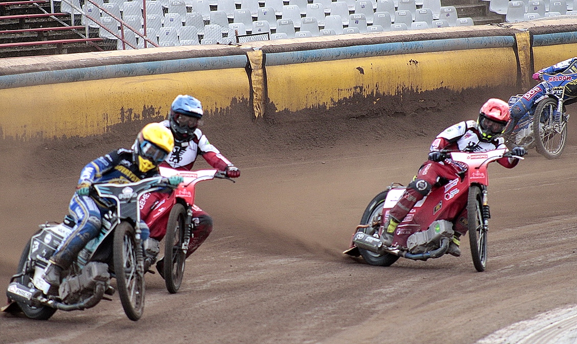 Zupełnie inaczej wyglądała sytuacja w ekipie gości. Maksym Drabik jako jedyny utrzymywał równy, wysoki poziom i zdobył 10 punktów, jednak zabrakło wsparcia liderów. Max Fricke, Wadim Tarasienko czy Michael Jepsen Jensen pojawiali się na torze sporadycznie, co jasno pokazuje, że w Grudziądzu sparing potraktowano głównie jako poligon doświadczalny. Sporo okazji otrzymali młodsi zawodnicy, jednak brak doświadczenia i problemy sprzętowe – jak trzy defekty Kevina Małkiewicza – odbiły się na wyniku.